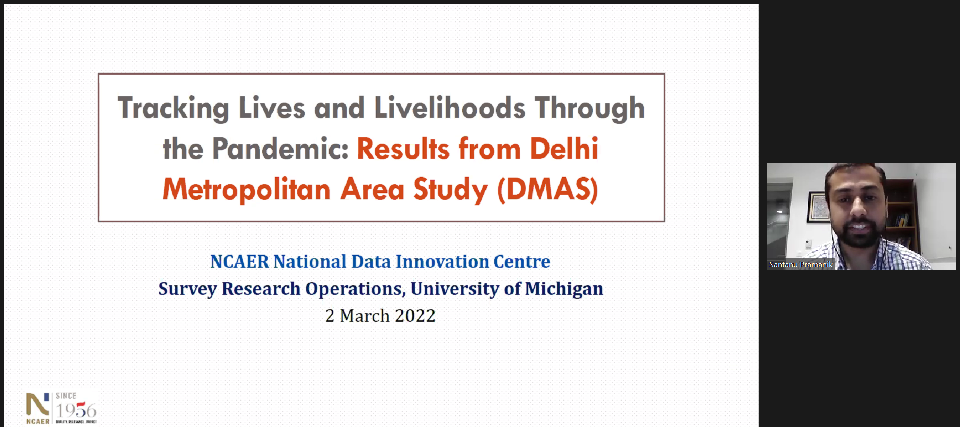 How have the lives of residents of Delhi and other areas in the National Capital Region (NCR) changed over the past two years since the advent of COVID?  NCAER National Data Innovation Centre (NCAER-NDIC) team discussed results from the Delhi Metropolitan Area Study (DMAS), which interviewed residents from Delhi-NCR in 2019, before the onset of the pandemic, and has continued to follow their lives since then, as they have struggled to protect their health and livelihoods, and to educate their children through the biggest global crisis of our generation.